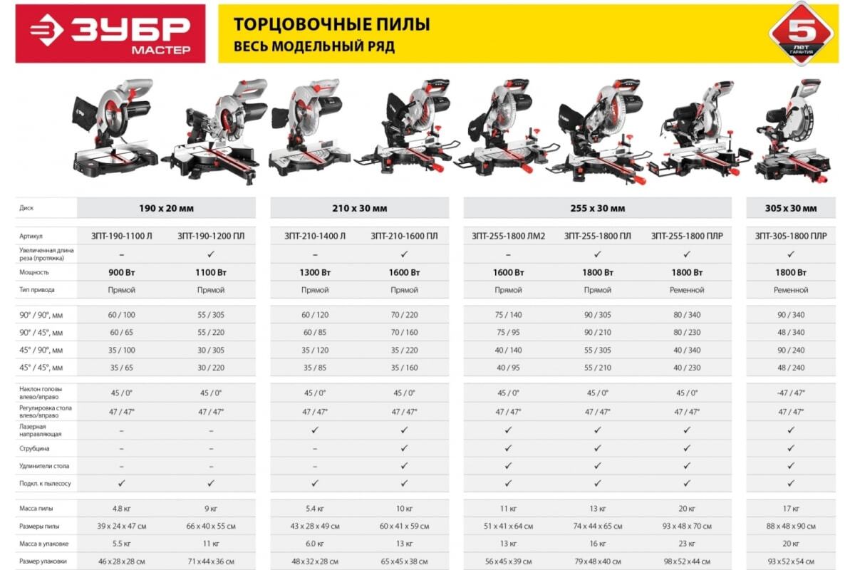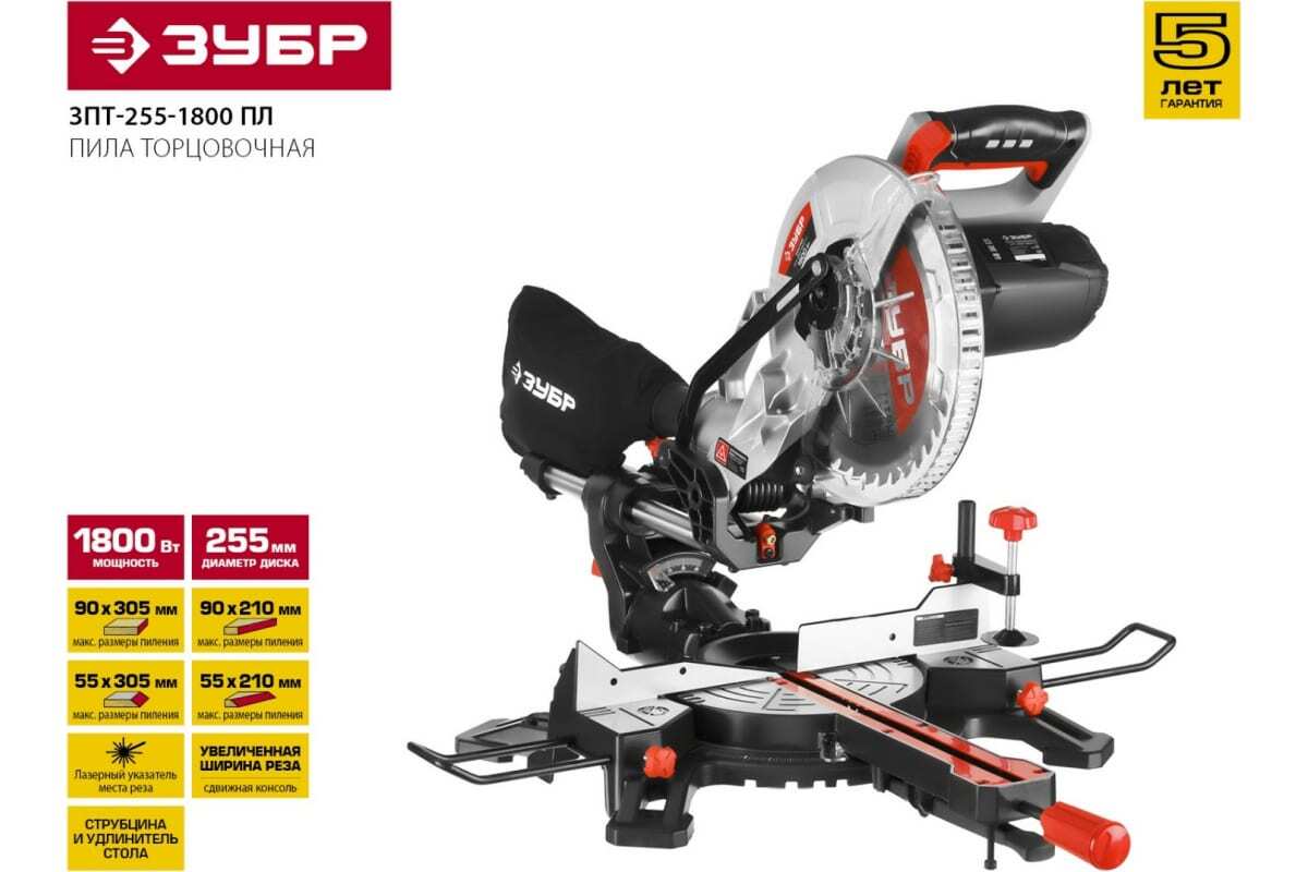 - Специальный сплав обеспечивает легкость и прочность конструкции Зубр МАСТЕР ЗПТ-255-1800 ПЛ;