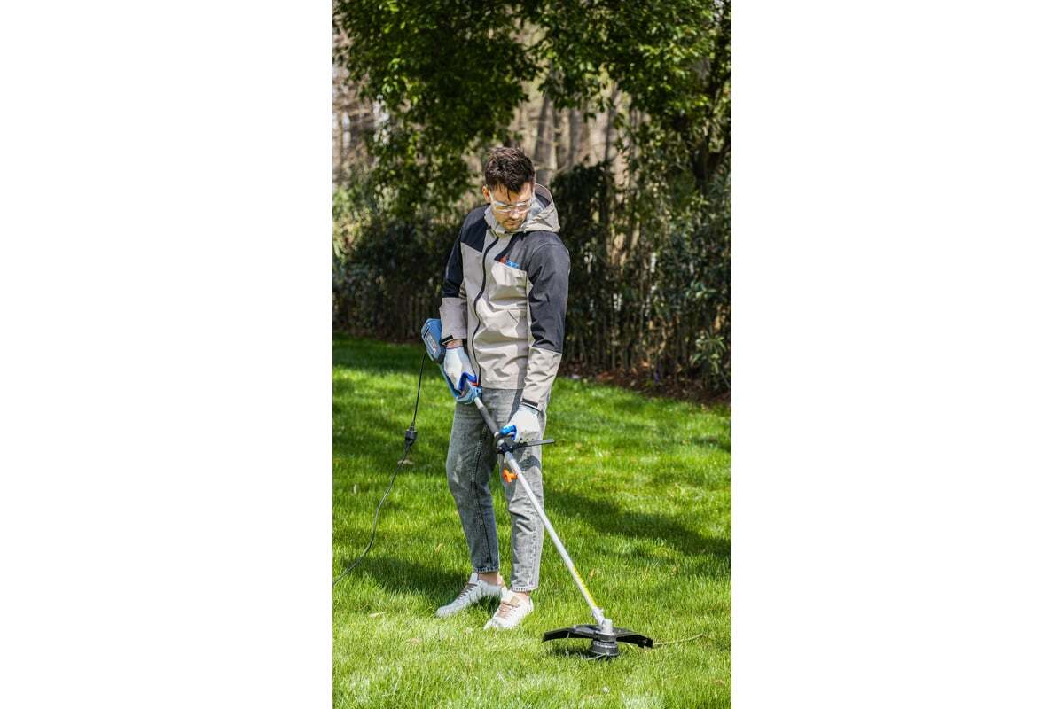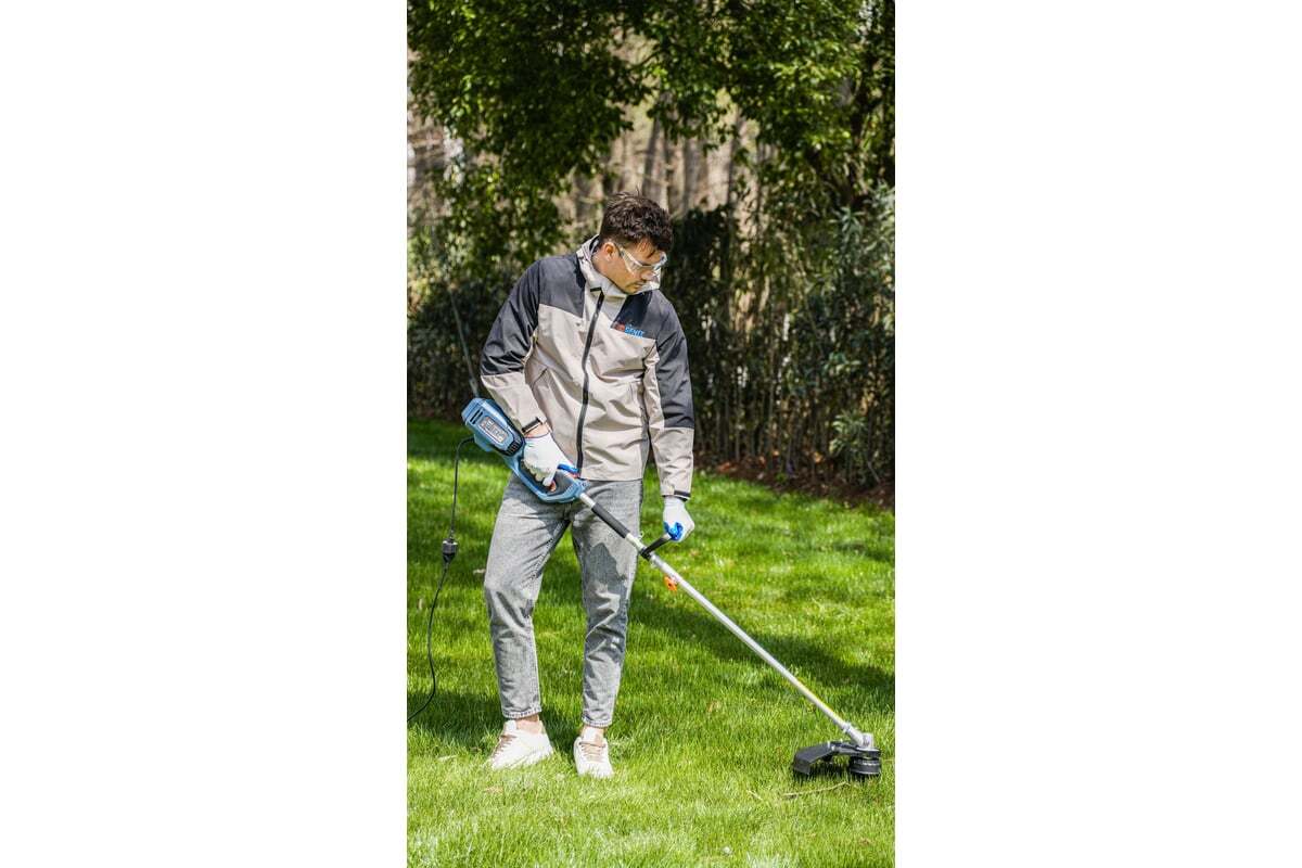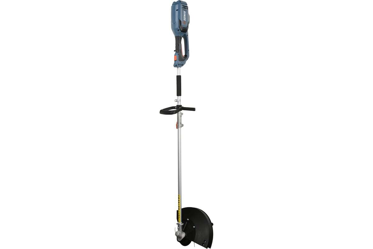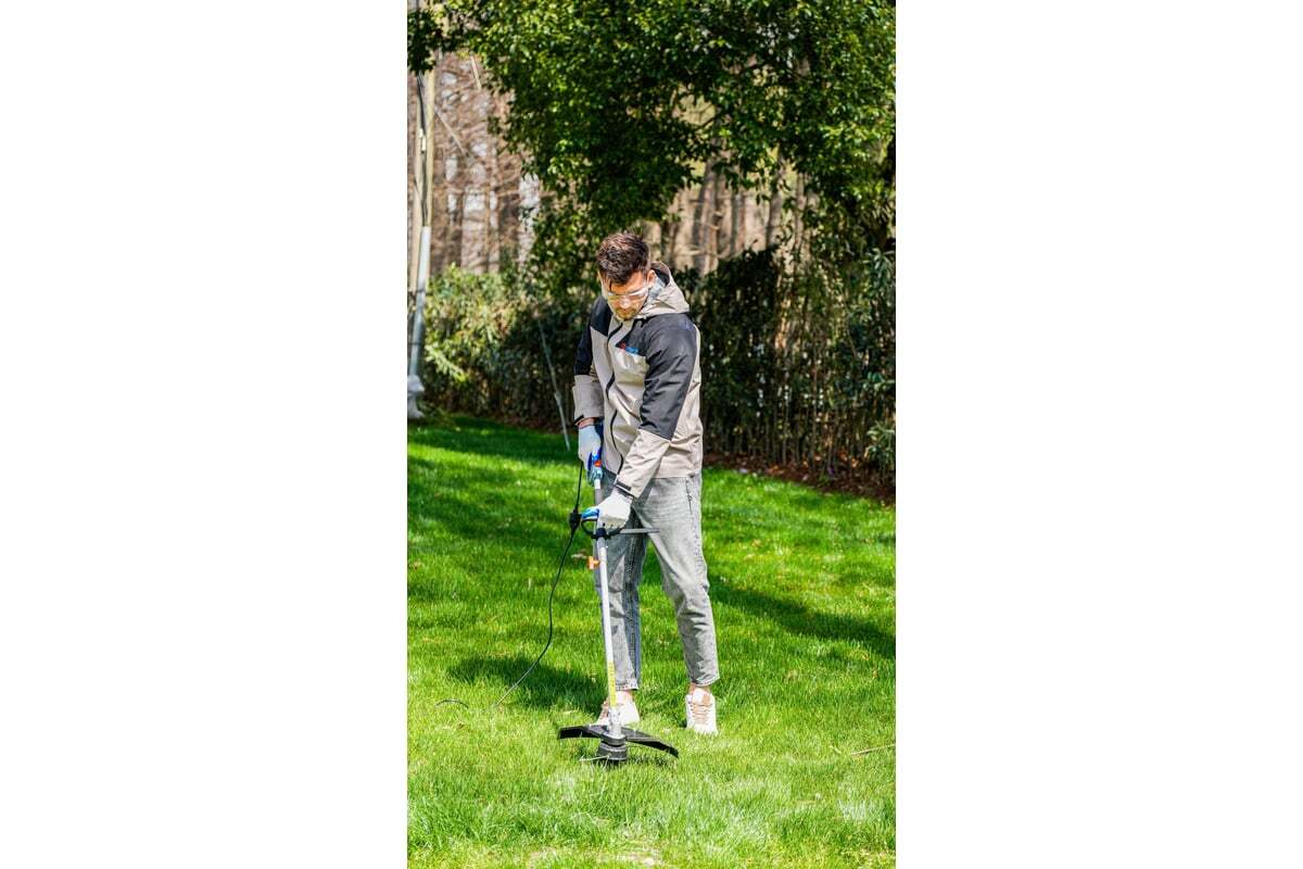 Номинальная потребляемая мощность электрического кустореза составляет 1200 Вт. Это позволяет ему легко справляться с жесткими стеблями травы, мелким и средним кустарником (при установке входящего в комплект трехлопастного ножа). Такая нагрузка на электросеть не является достаточно высокой, чтобы вызывать какие-либо затруднения при эксплуатации устройства.