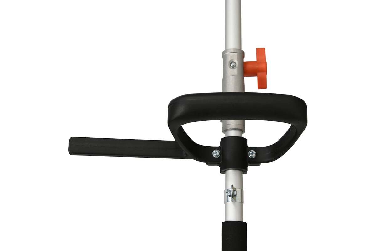 Верхнее расположение двигателя позволяет лучше и точнее контролировать кусторез в процессе работы, смещает центр тяжести в сторону пользователя для лучшей развесовки (чему также способствует регулируемая вспомогательная рукоятка).