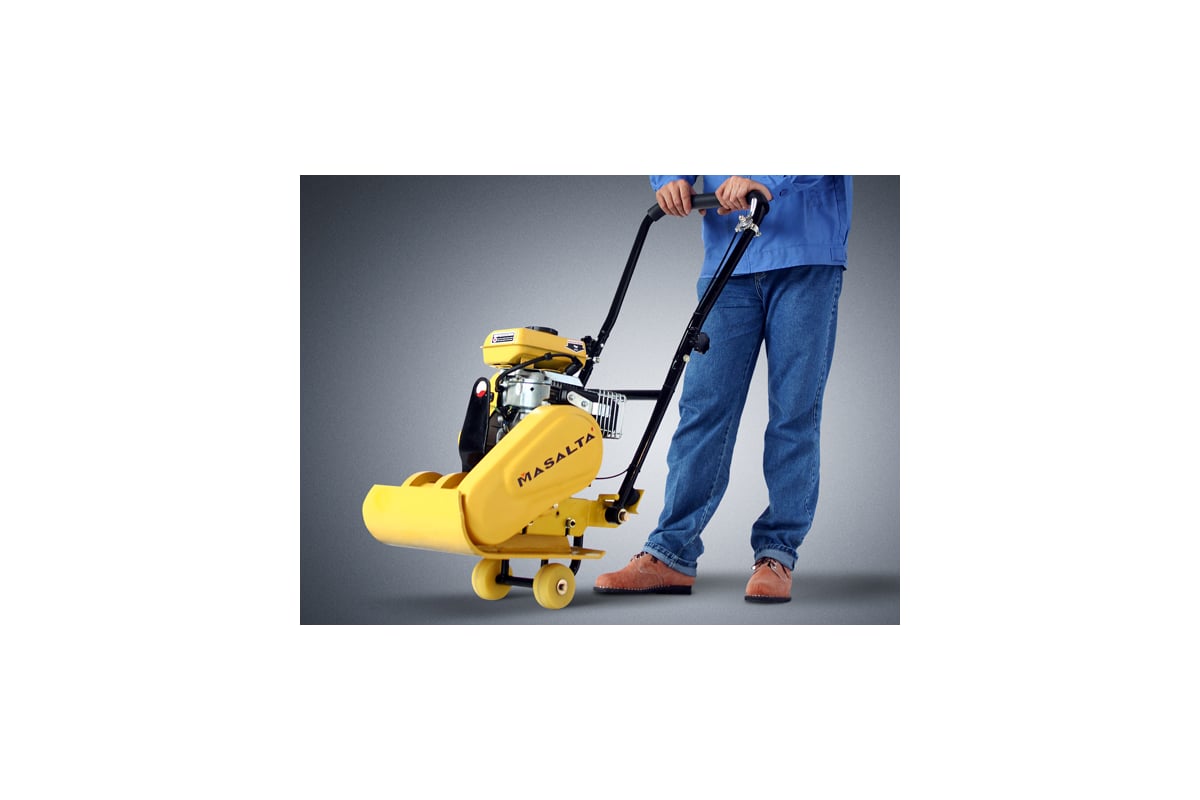Masalta MS50-2 — это самая легкая и компактная модель в линейке производителя, весом всего 54 кг. Она специально разработана для работ в труднодоступных местах: узких траншеях, вдоль бордюров, фундаментов и при благоустройстве садовых дорожек. Благодаря малому весу и складной ручке, плита легко помещается в багажник легкового автомобиля, что делает её идеальным выбором для частного строительства и мобильных ремонтных бригад. Несмотря на компактность, модель развивает центробежную силу в 8.2 кН, что достаточно для качественного уплотнения песка и мелкого гравия на глубину до 20 см