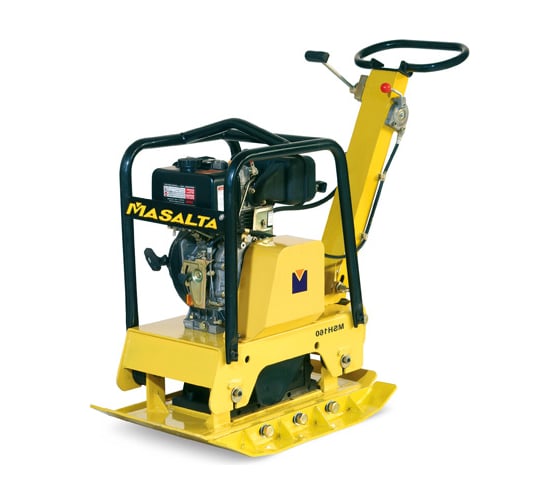 Masalta MSH160-4 — это тяжелая реверсивная виброплита, предназначенная для серьезных дорожных и строительных работ. С весом 149 кг и мощным японским двигателем Honda GX200 (6.5 л.с.), она занимает нишу между легкими маневренными плитами и сверхтяжелыми гидравлическими машинами. Главная особенность модели — надежный механический реверс, который позволяет легко менять направление движения, что критически важно при работе в траншеях, узких проходах и вдоль фундаментов.