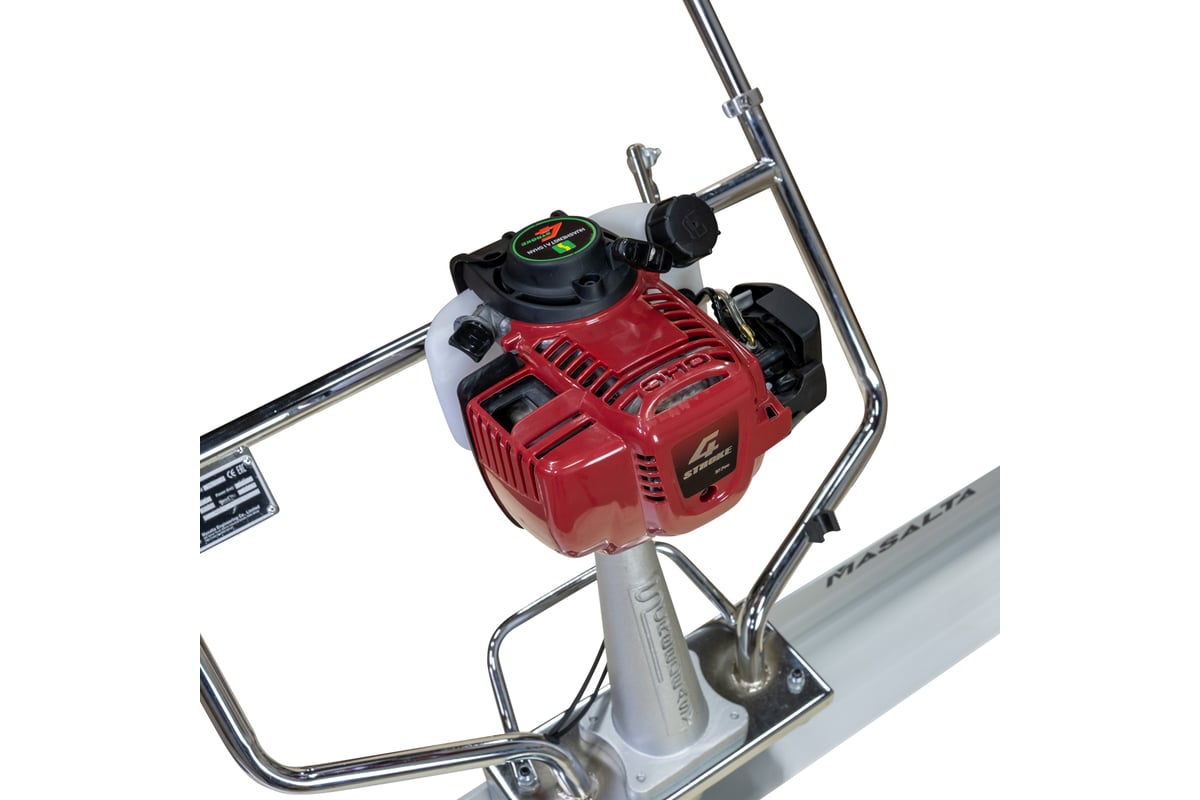 Masalta MCD-2 — это надежная плавающая виброрейка, ставшая стандартом в дорожном строительстве и заливке промышленных полов. Оснащена выносливым китайским аналогом двигателя GX35 мощностью 1.9 л.с., который обеспечивает частоту вибрации до 7000 виб/мин. Главное преимущество модели — уникальная конструкция с закругленными краями лезвия, что позволяет обходить препятствия и аккуратно заглаживать бетон у колонн или стен. Благодаря малому весу (около 13 кг без лезвия) и эффективным амортизаторам, рейка минимизирует передачу вибрации на руки, позволяя оператору работать дольше без усталости.