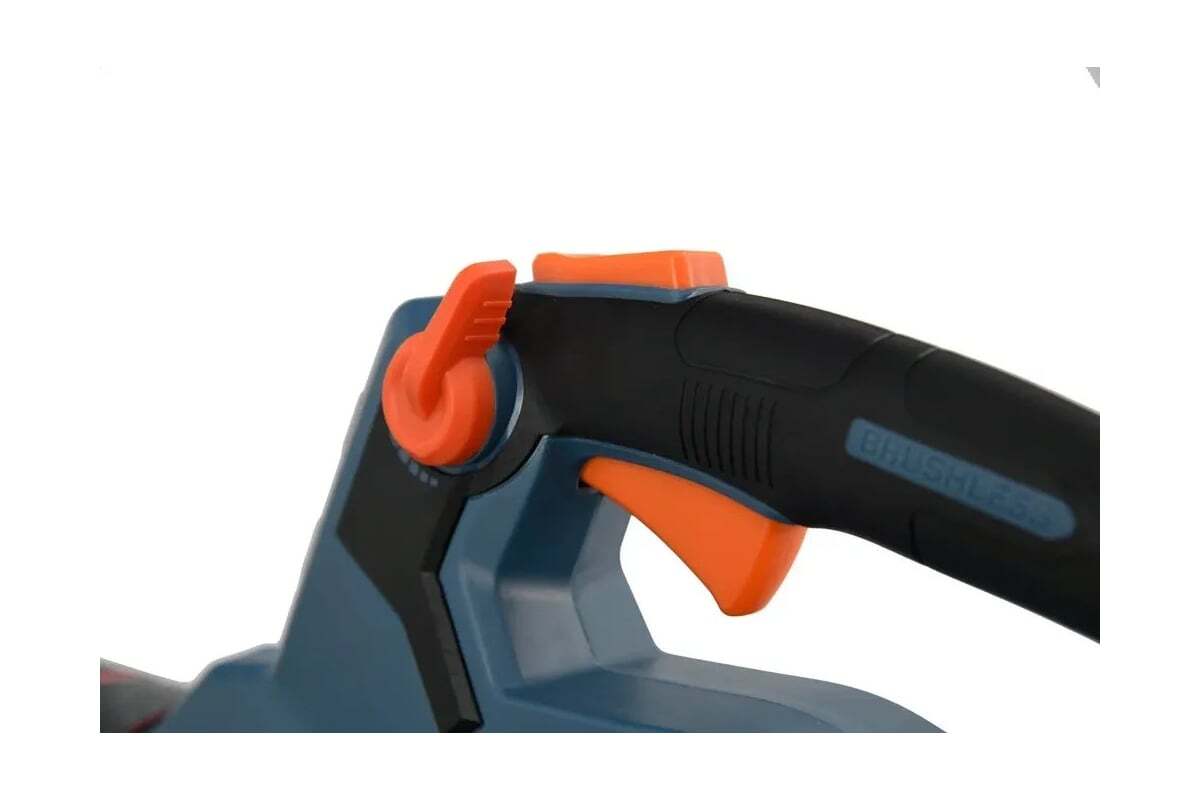 Эргономичный дизайн и легкий вес в 2,7 кг без аккумулятора делают её удобной для использования одной рукой, обеспечивая комфорт и маневренность даже при длительной работе. Максимальный объем воздуха в 1200 м³/ч гарантирует быстрое и эффективное удаление мусора и листьев, оставляя ваш участок безупречно чистым.