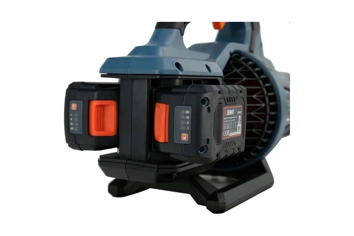 Воздуходувка оснащена двумя аккумуляторами SENIX серии X2 по 4,0 Ач и двухпортовым зарядным устройством, что обеспечивает длительное время работы и быструю зарядку. Уровень звукового давления 80 дБ(А) и вибрационное воздействие менее 1,5 м/с² делают её достаточно тихой и комфортной для использования в жилых районах.