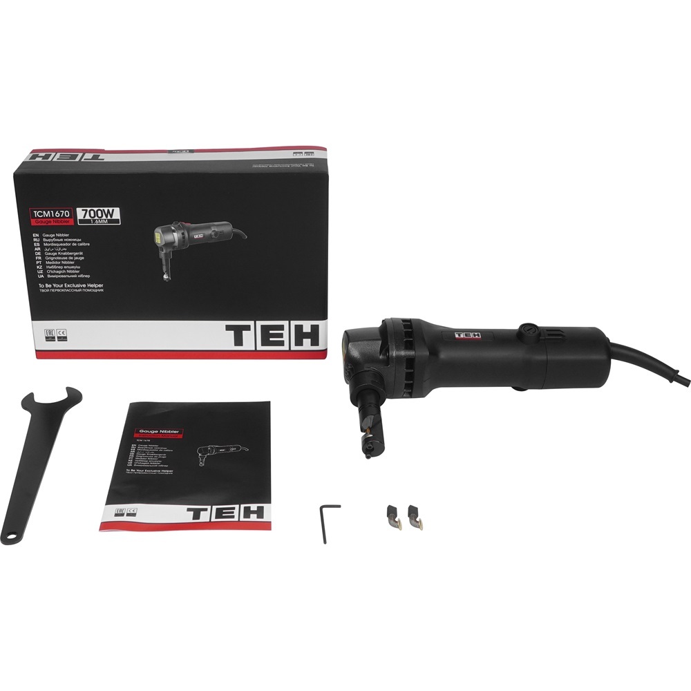 Вырубные ножницы TEH TCM1670 предназначены для резки гладкого и профилированного трапециевидного листа, а также для выполнения внутренних вырезов, в том числе при небольшом радиусе изгиба линии реза. Ножницы приспособлены для резки и выполнения внутренних вырезов в листах из мягкой стали, нержавеющей стали, в медных и алюминиевых листах.